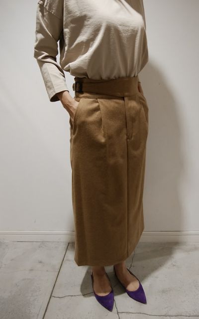 サイドのバックルベルトがアクセントになったスカート。