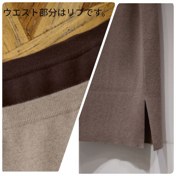 ウエストはゴム使用、左側のみサイドスリットが入っています。