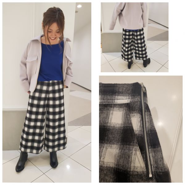 大きなチェックがアクセントのワイドガウチョが入荷しました。