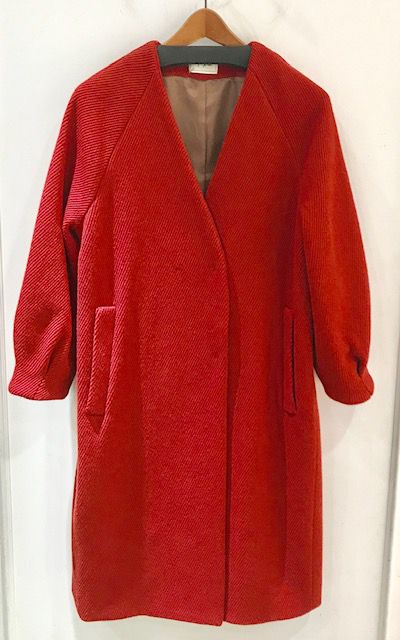 立体的ではっきりとしたカルゼ生地がムード感たっぷりのノーカラーコートです!