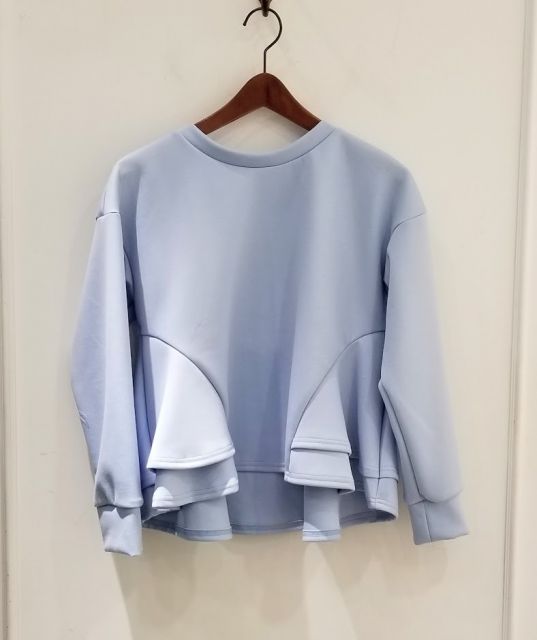 フリルは2段になっており、生地はカジュアルでもフェミニン全開!