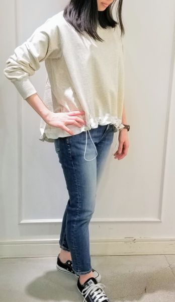 裾にはドロストコードが通っているので、軽く絞って、くしゅっと感を出し、程よく広がりが抑えらます(*^^*)
