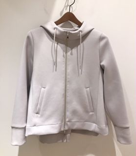 ほどよいゆるさのフレアシルエットがカジュアルに見えすぎず、ソフトで抜け感のある印象のジップパーカー。