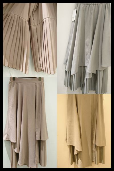 フレアのスカートの裾からプリーツがちらりと見える、デザイン性の高いボトムですよっ。