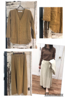 ジャケットはエレガントに共布でキュッと絞ってみたり、カッコ良くボタンをあけてラフに羽織ったり。