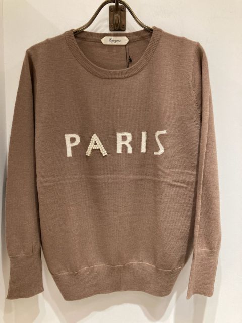 こんにちは。イトウです。 本日は新作ニットをご紹介致します。 ウール混で保温性、伸縮性があり適度な吸湿性があります! すっきりとしたラインにパールとシルバービーズの装飾付きの"PARIS"がポイントです。 薄く柔らかいので着心地も最高です。 ロゴニット ESPEYRAC 7042004 グレー モカ ブラック 11000円+税