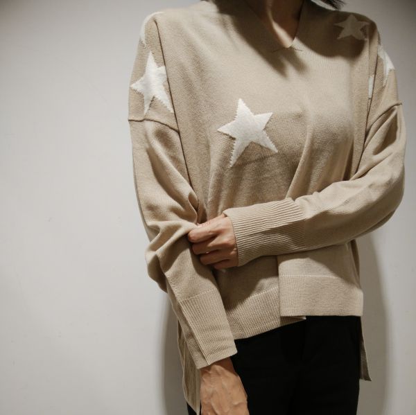 普段はVネック部分が深いのでインナーを合わせて頂いて、寒くなってきた時期はタートルやハイネックなどをレイヤードして頂くのもおすすめです。